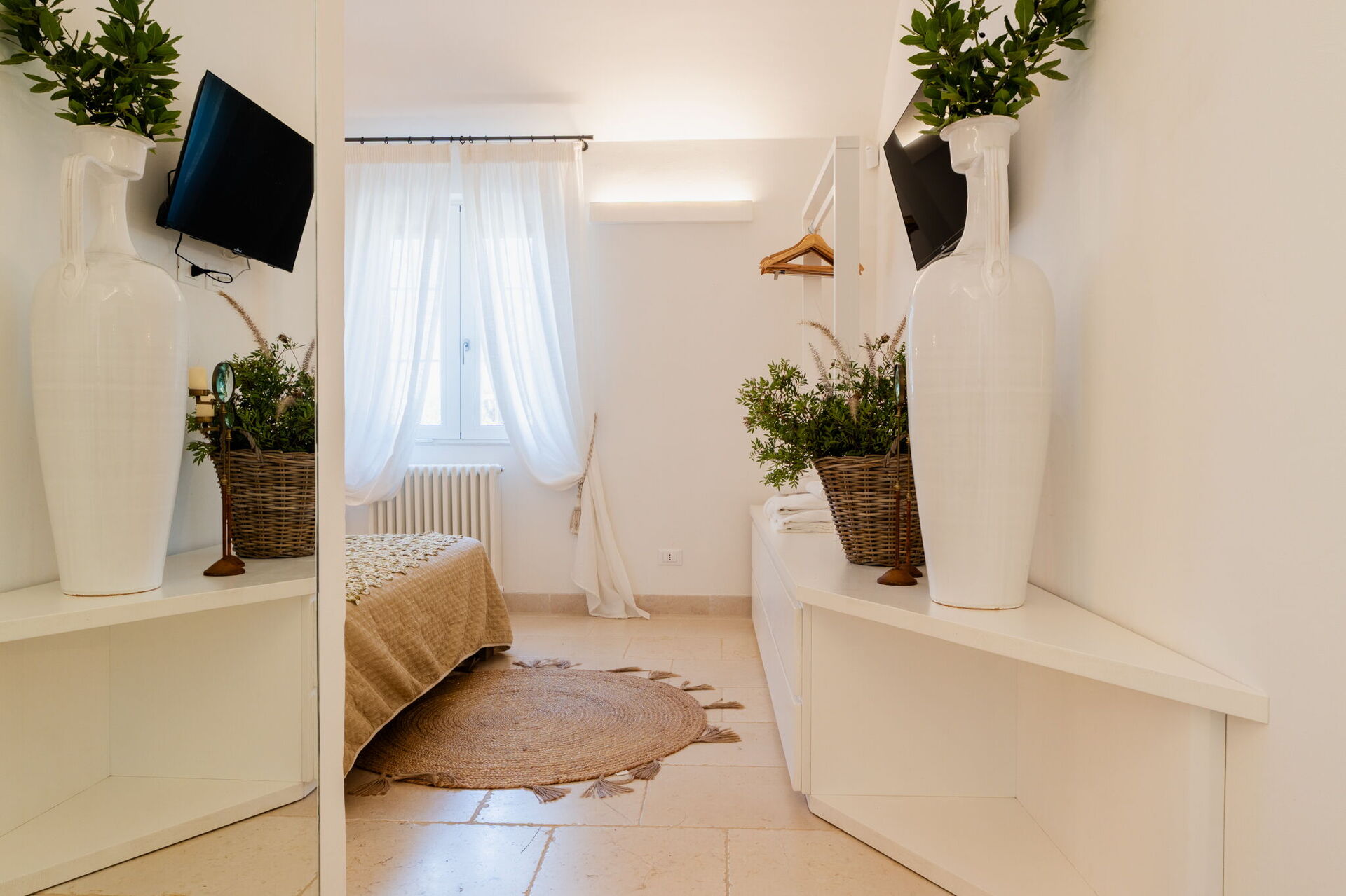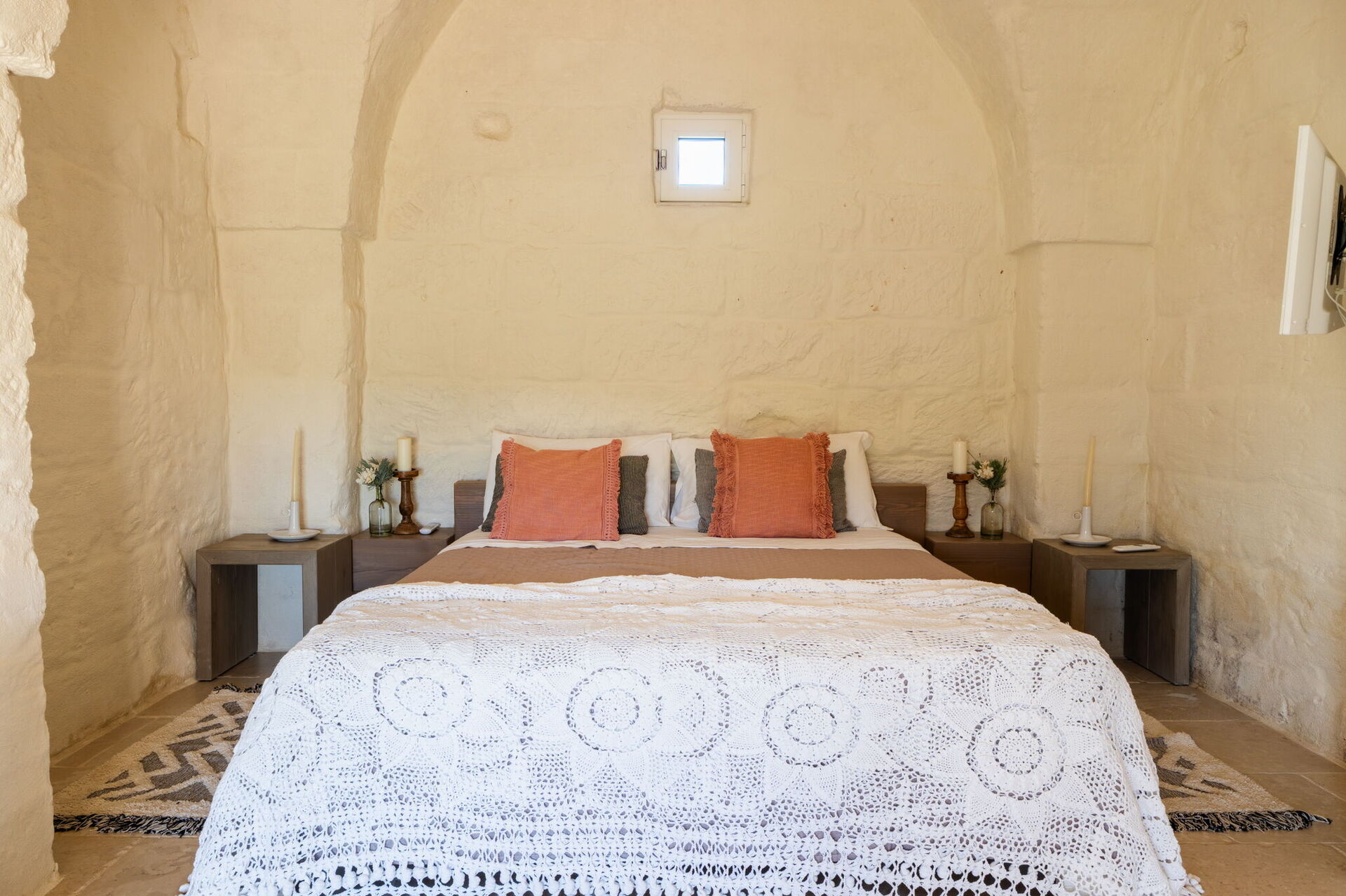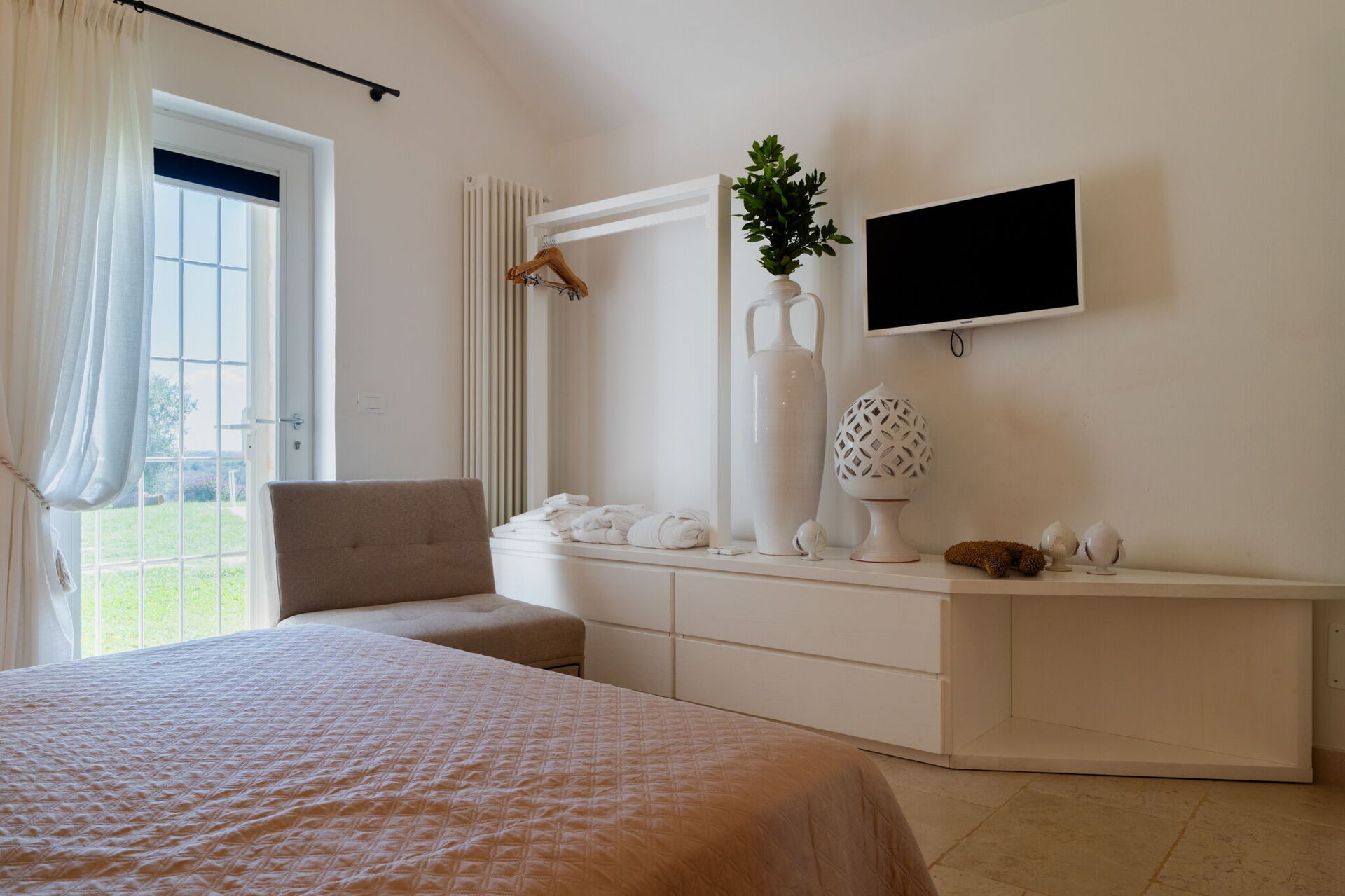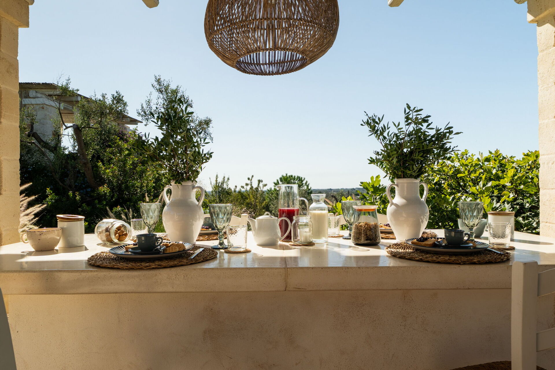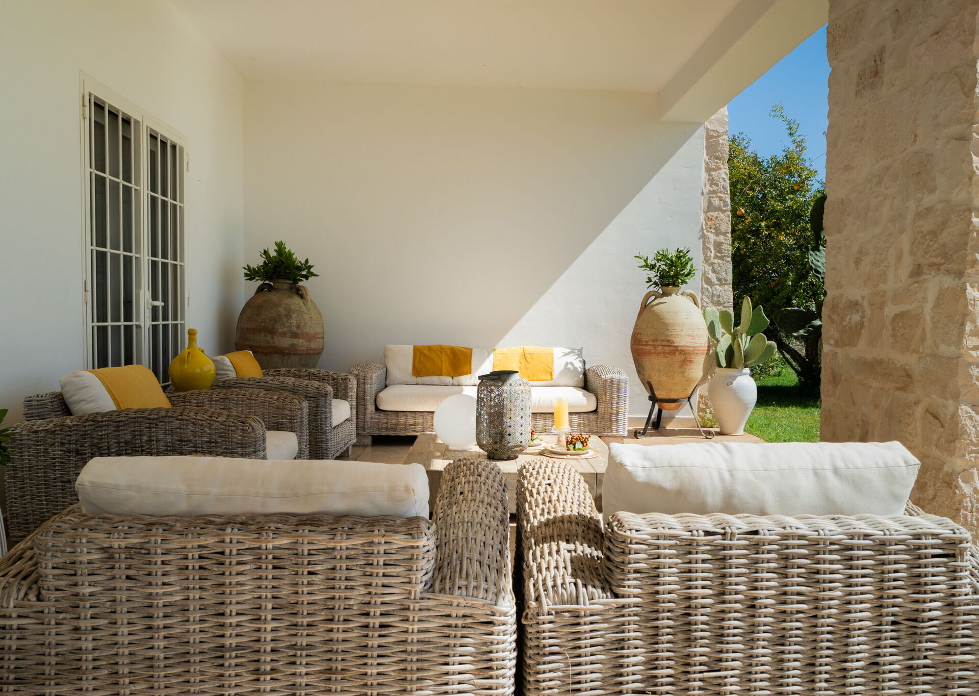 Fresh, full of light, this property stands in the countryside, twenty abundant minutes from the coast, this small estate offers privacy and a full immersion in the Apulia countryside, yet it’s close to all the most relevant destinations in the area, just seven kilometres from Ostuni. The home design, approached with research in the historical context, results in a newclassic style with modern tiled floors and tuff stone walls together with vaulted ceilings that lend a rustic and airy feel to the interiors. Elements of classic local residential architecture, such as the exposed stones, are combined with contemporary touches, like bottom to ceiling windows and modern infrastructure and energysaving systems.