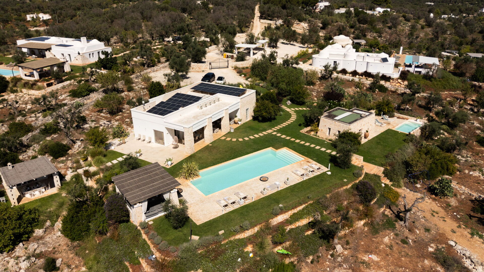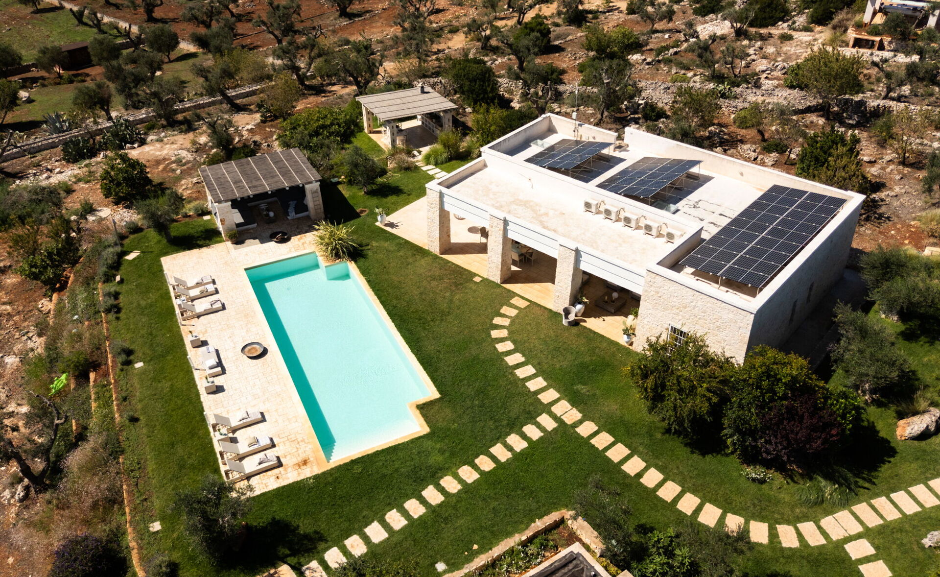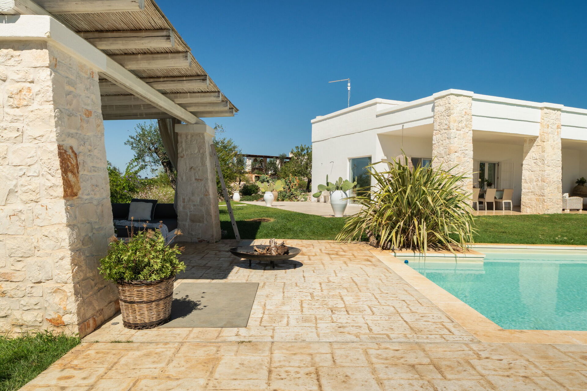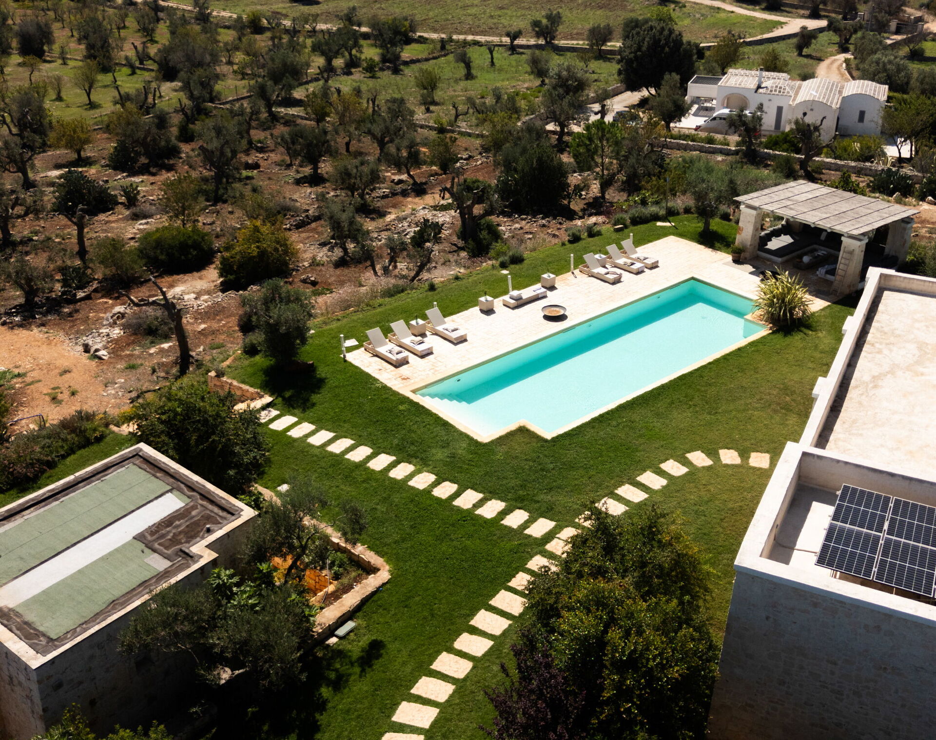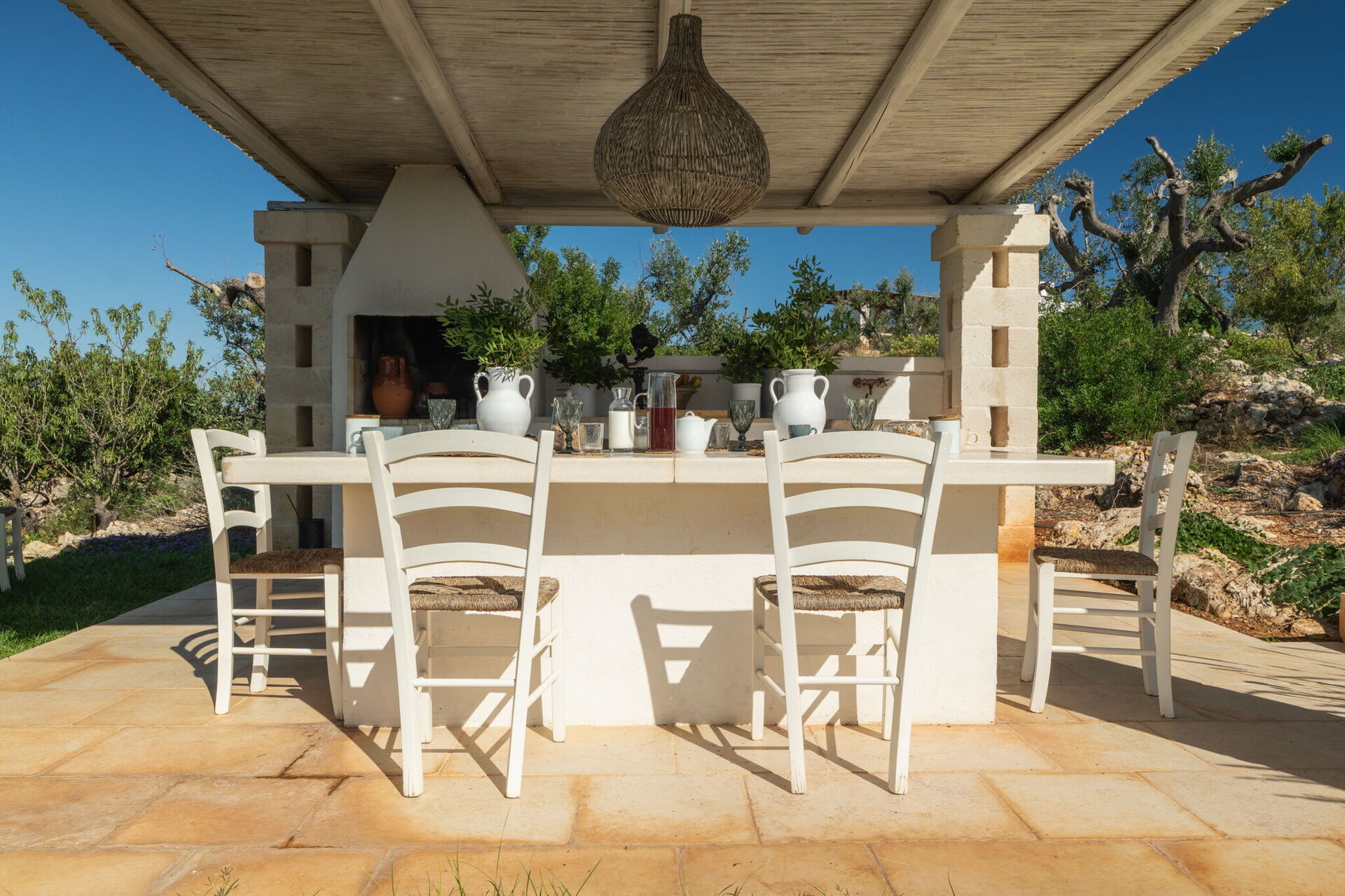 Lost in time and space, balancing a contest made of wild Apulian life with its traditional food, olive trees and white limestone trulli relics, this estate brings modernity, light and tradition together.