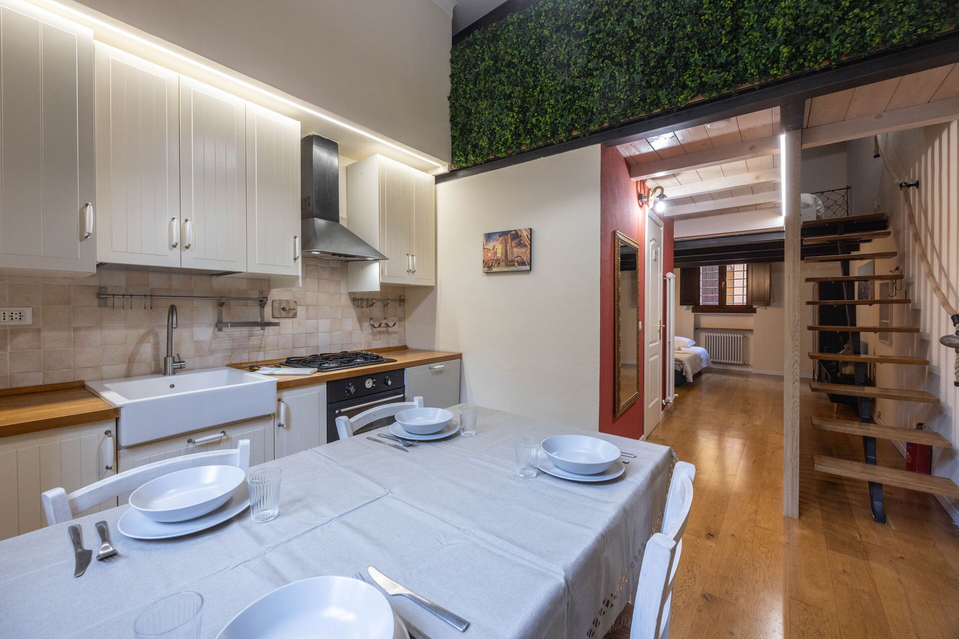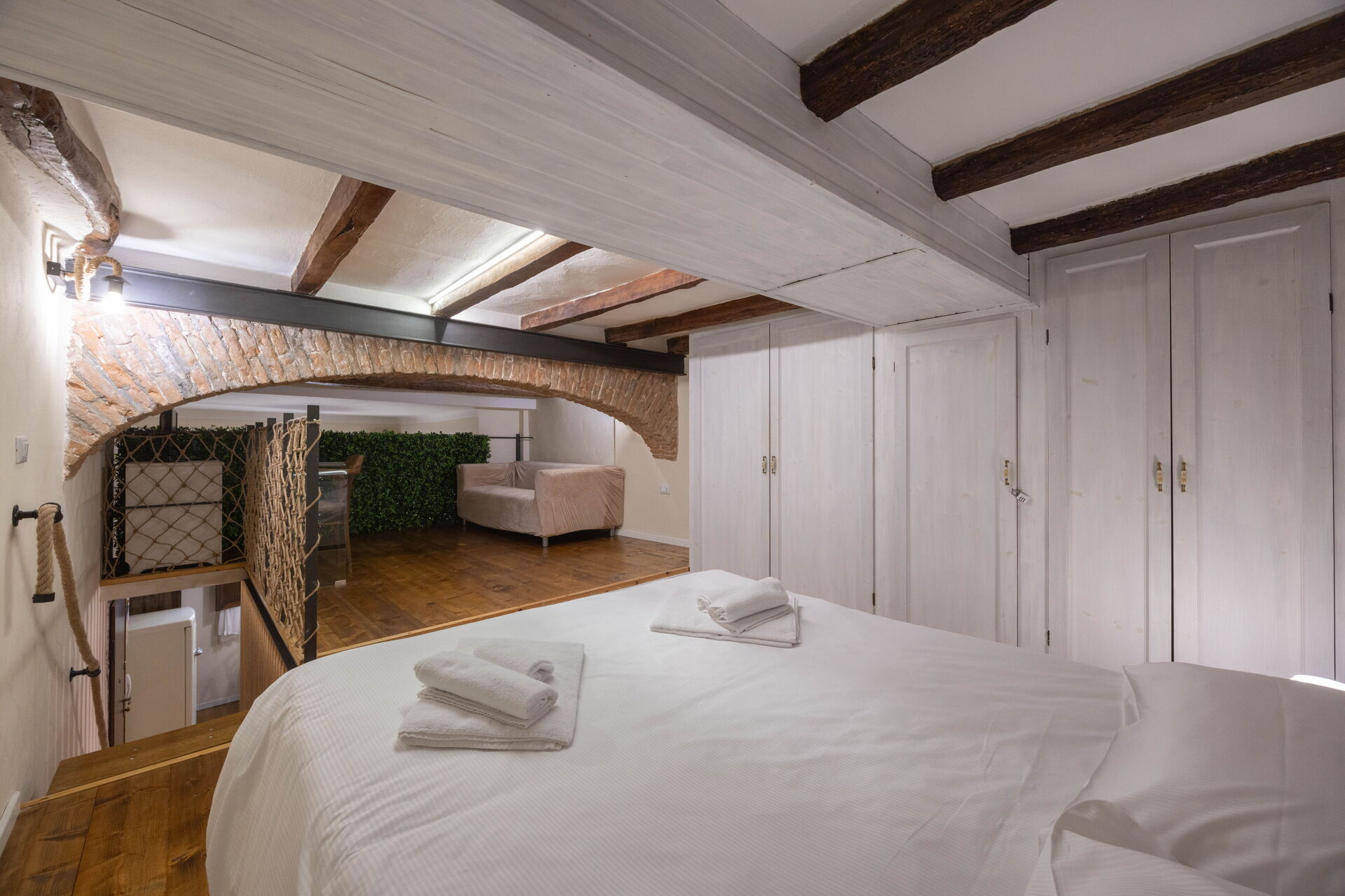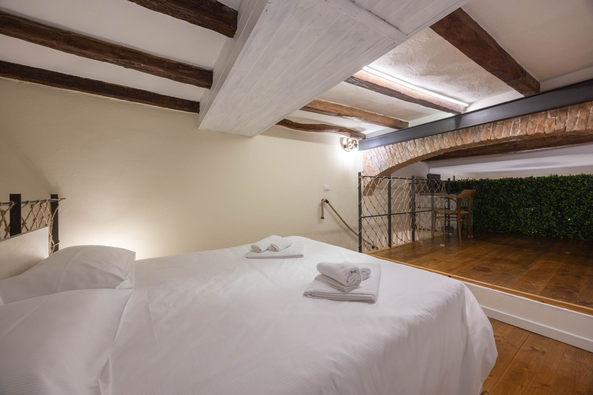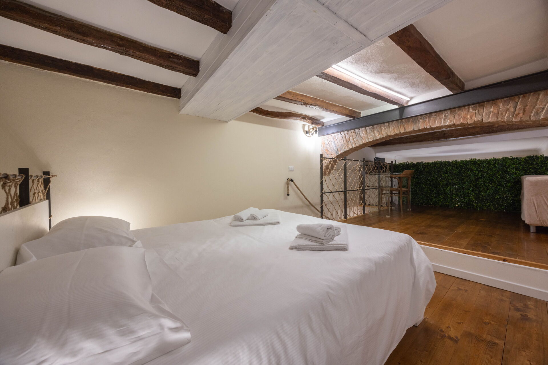 Located on the ground floor of an elegant period building in the historic center, the loft can accommodate up to four people in a fluid, bright and quiet environment. Ideal for couples looking for a romantic retreat, families eager to explore the city or friends who love to share authentic moments.