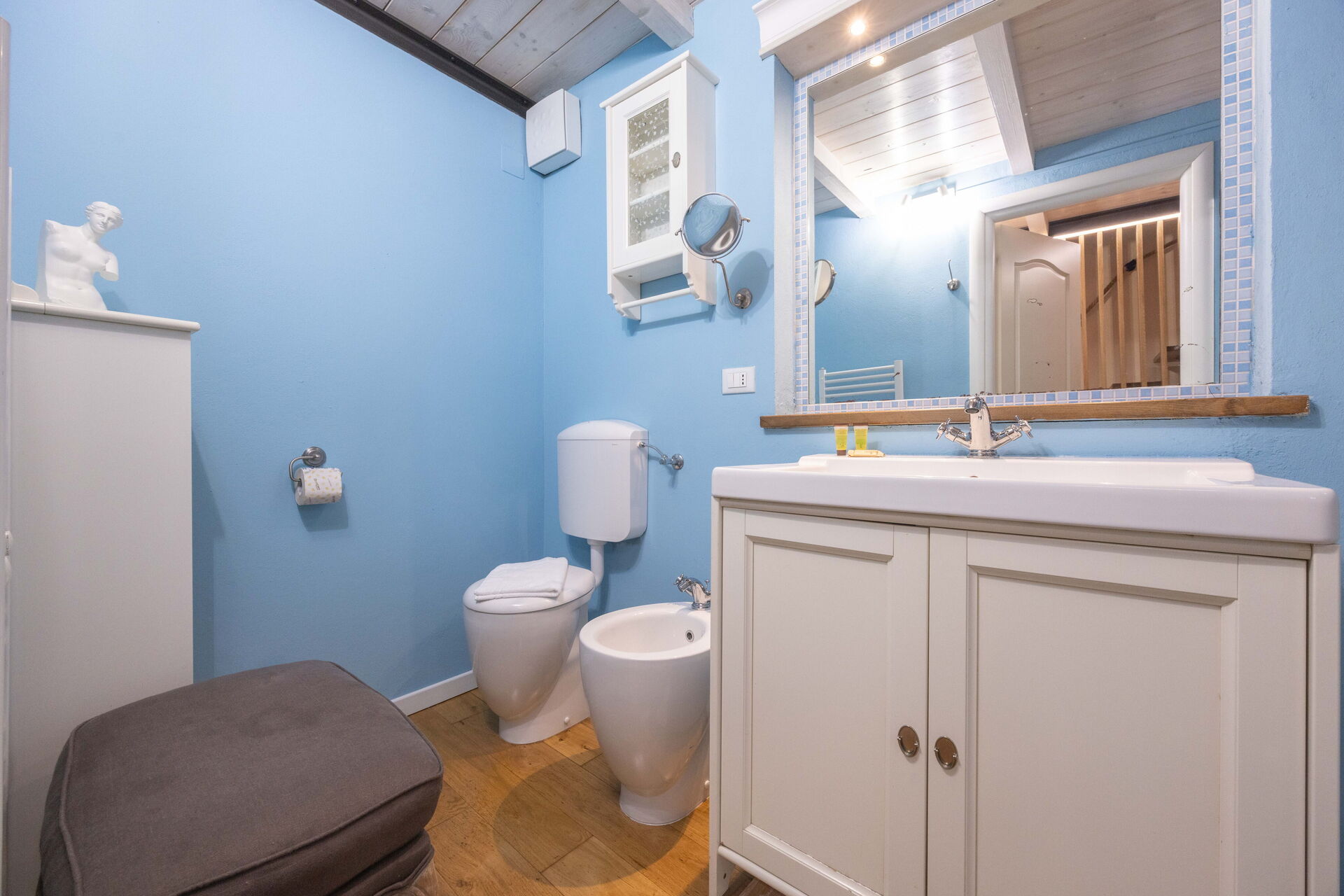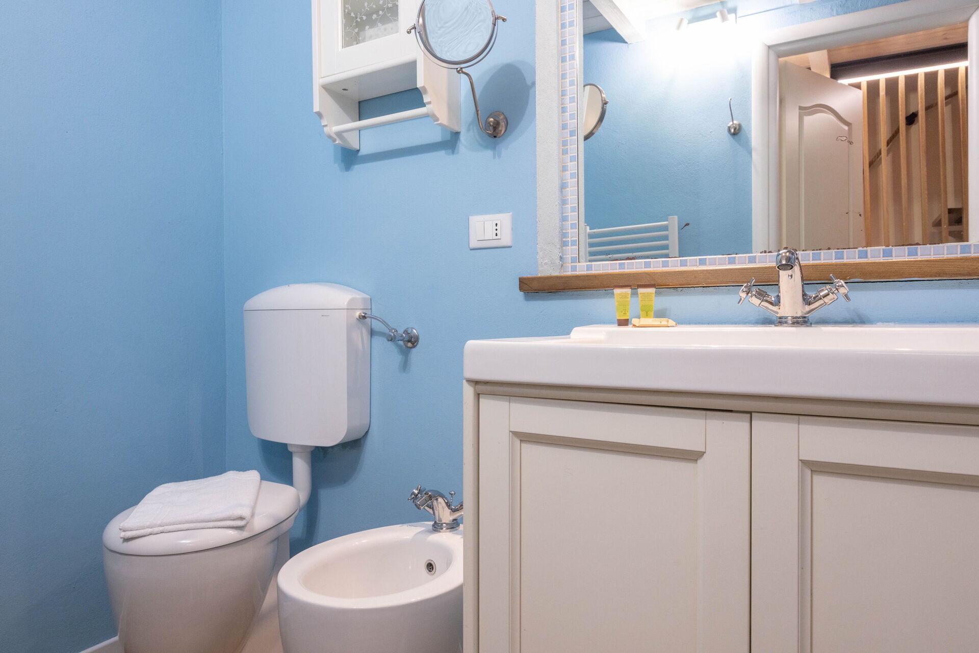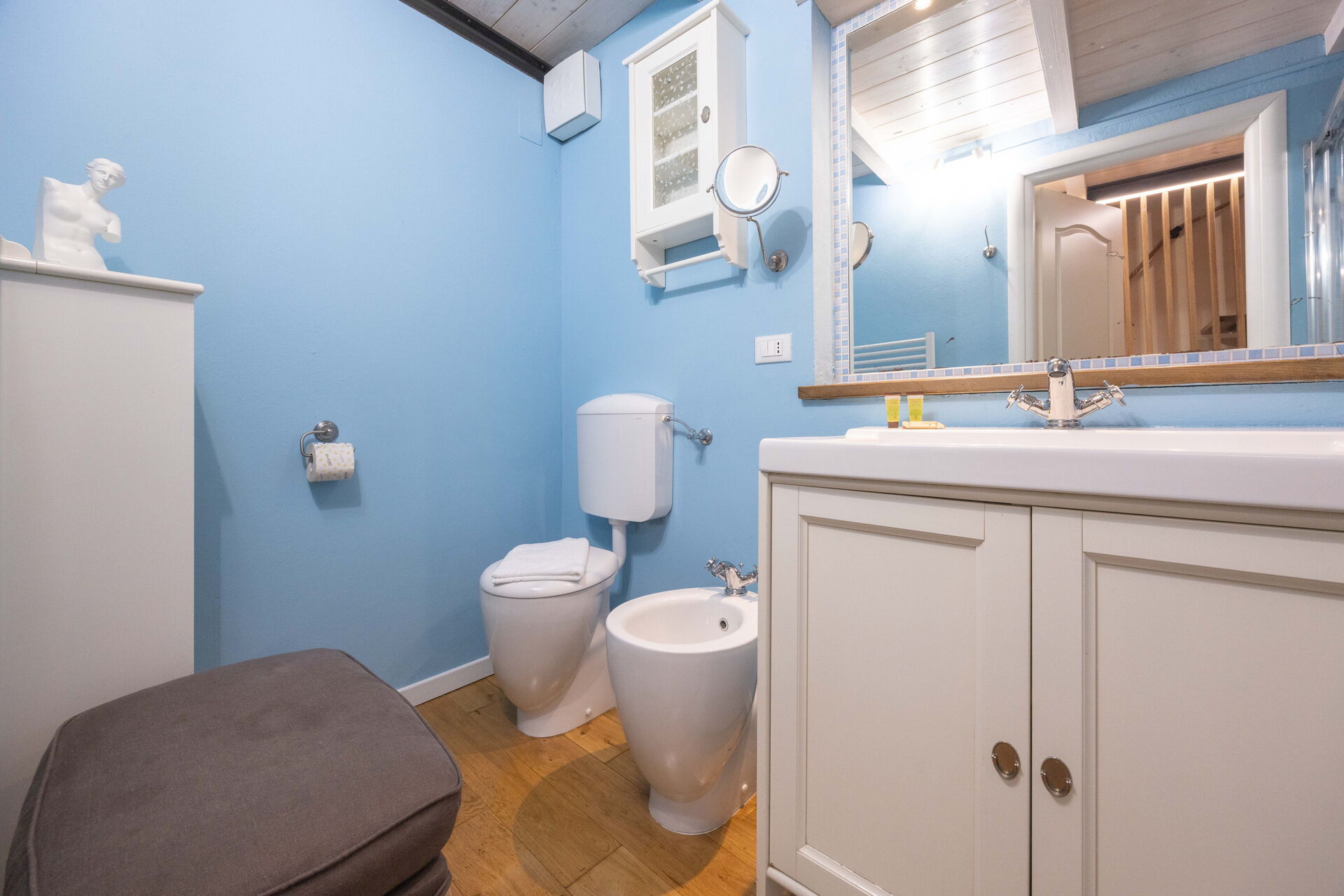 The recently renovated bathroom is spacious and functional: large shower cubicle, washbasin, toilet, bidet, backlit mirror, hairdryer and courtesy products.