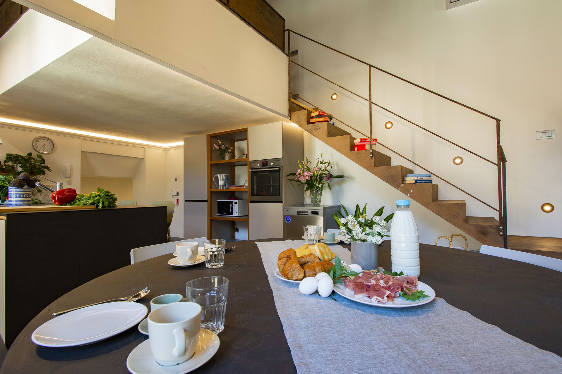 The interiors offer a contemporary take on classic Florentine living, featuring warm tones, elegant furnishings, and carefully selected details that reflect local craftsmanship and a refined sense of place.