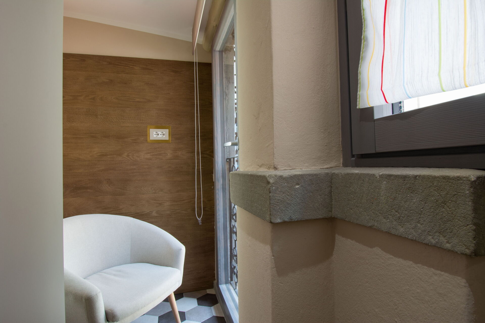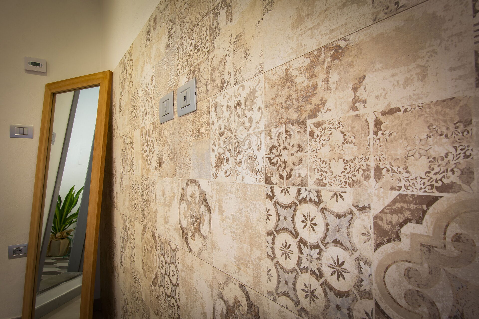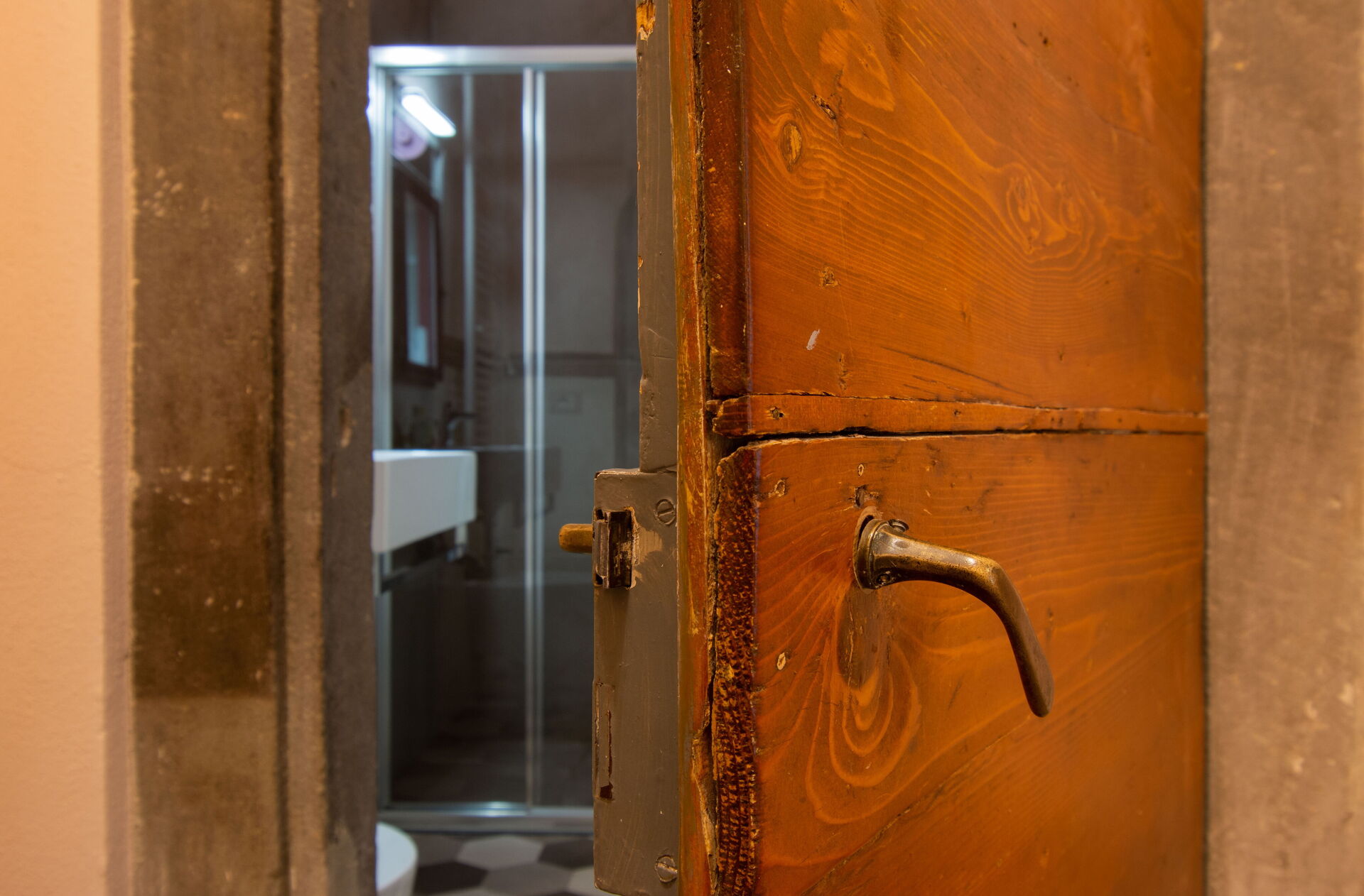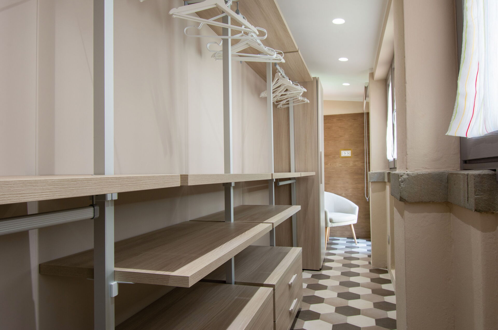 A central hallway connects the living and dining areas to the sleeping quarters. Each of the five bedrooms offers maximum comfort, flexible bed arrangements, and private access to a bathroom. The first bedroom (with a divisible 160 cm bed) overlooks Florence’s rooftops and has a bathroom with a bathtub directly opposite. The second bedroom (also with a divisible 160 cm bed) includes access to a private terrace and en-suite bathroom with a walk-in shower.